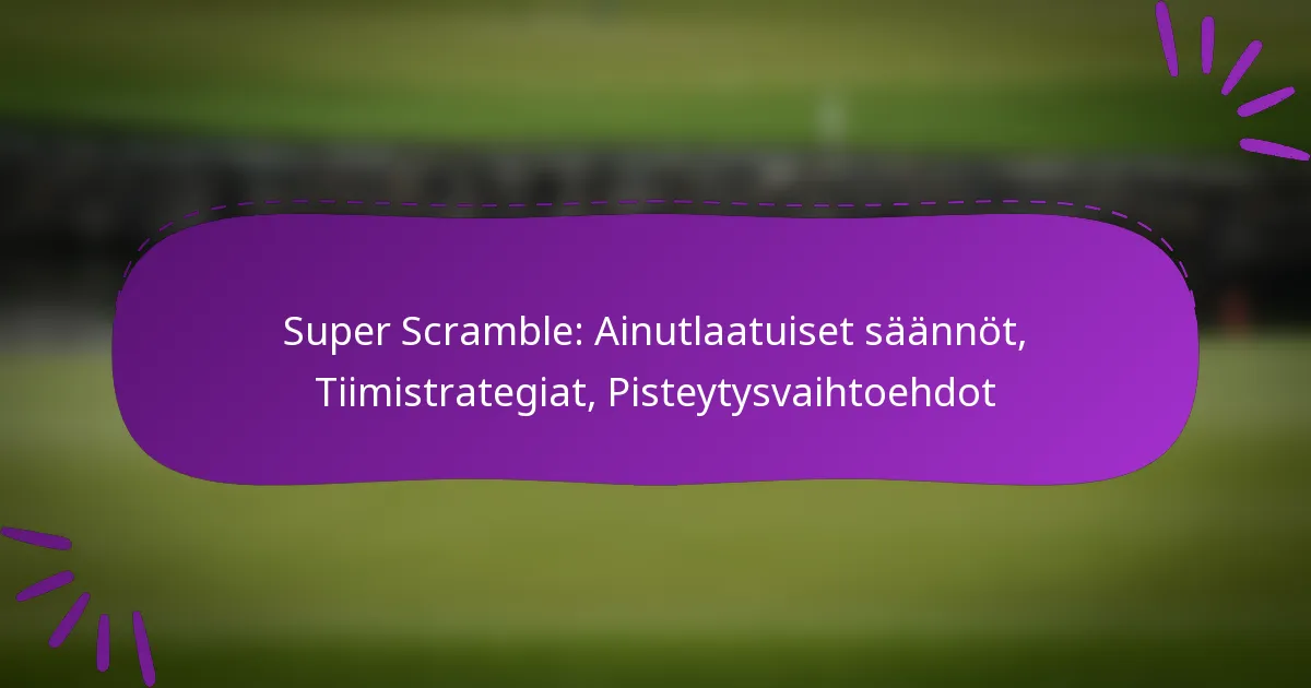 Super Scramble sisältää monipuolisia pisteytysvariatioita, jotka vaikuttavat siihen, miten tiimit keräävät pisteitä kilpailun aikana. Näiden variaatioiden ymmärtäminen on ratkaisevaa tehokkaiden strategioiden kehittämiseksi ja suorituksen maksimoimiseksi.